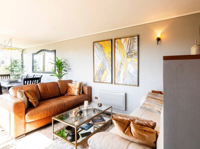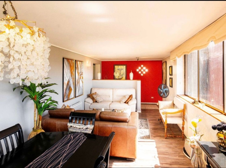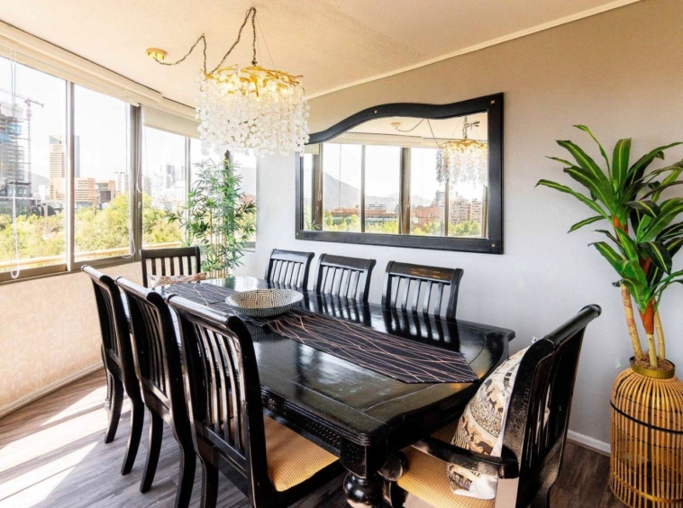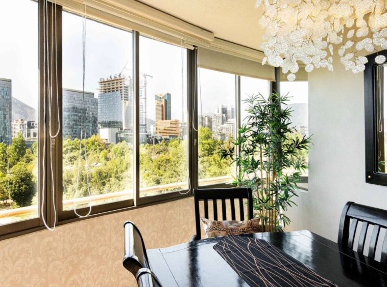 Arriendo departamento AMOBLADO en exclusivo sector de Las Condes, a pasos de Presidente Riesco y Alonso de Córdova, en el entorno de Parque Arauco. Ubicado en piso 9 y con orientación nororiente, esta propiedad ofrece 116 m² muy bien distribuidos, destacando por su luminosidad, amplitud y funcionalidad. Cuenta con 3 dormitorios, 2 baños y medio, además de una de las habitaciones habilitada como escritorio, ideal para home office. Dispone de aire acondicionado, calefacción por radiadores eléctricos, piso flotante de alto tráfico, lavadora y secadora. El edificio se encuentra en condominio cerrado con conserjería 24/7 y excelentes áreas comunes, entre ellas piscina, gimnasio, quincho, lavandería, 2 ascensores y estacionamientos de visita. Incluye 1 estacionamiento. Se aceptan mascotas. Valor de arriendo: $2.400.000 todo incluido (Arriendo, luz, agua, gas, gastos comunes, internet).