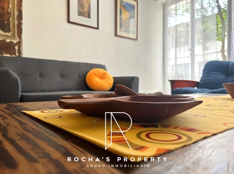• Espacioso living y comedor, decorados con piezas de diseño, perfectos para quienes aprecian ambientes acogedores y bien logrados.