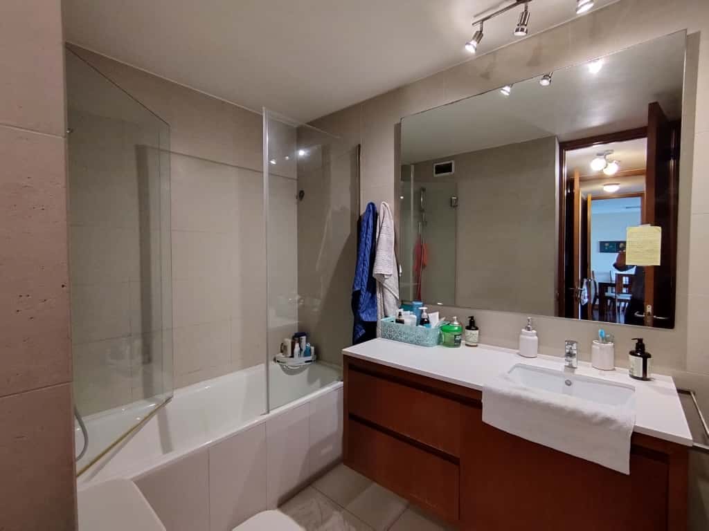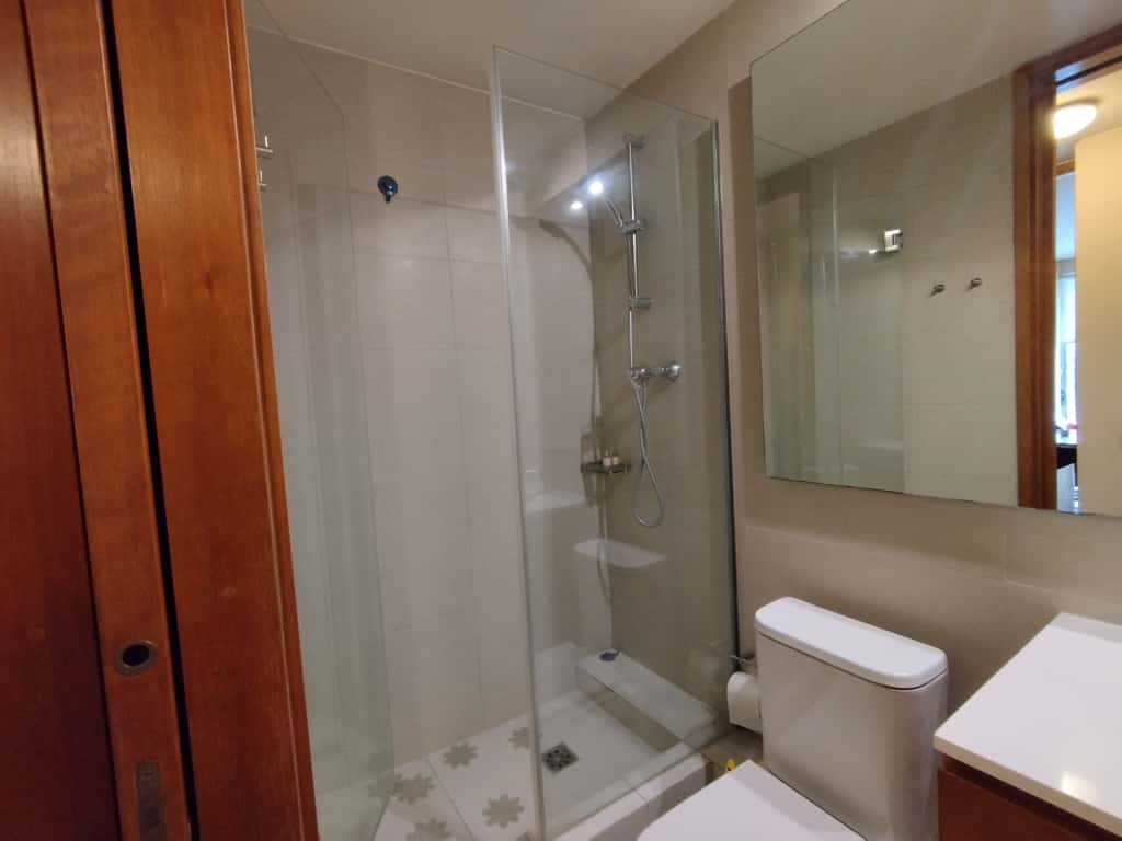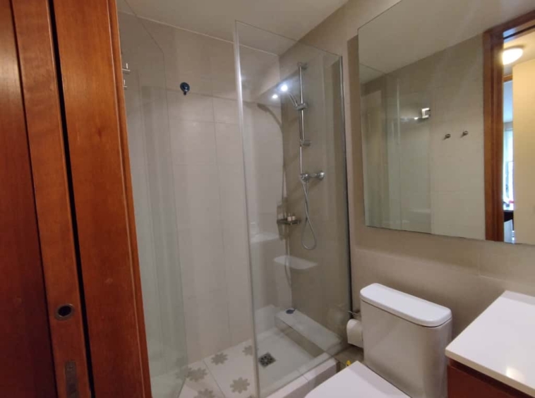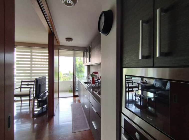 La propiedad cuenta con 2 dormitorios (principal en suite con walk-in clóset) y 2 baños completos, además de una cocina completamente equipada con electrodomésticos de primera línea, horno empotrado, encimera vitrocerámica y refrigerador.