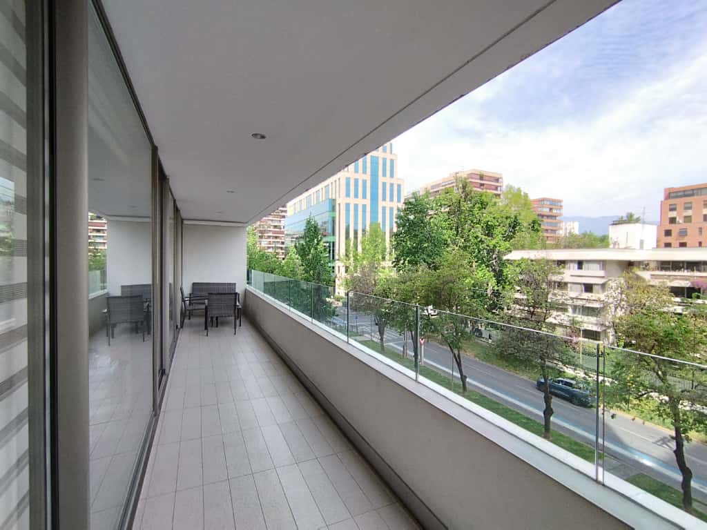 Exclusivo departamento full amoblado de 65 m² útiles más amplia terraza de 20 m², ubicado en uno de los sectores más prestigiosos de Santiago, a pasos del Metro Alcántara y del corazón financiero de El Golf.