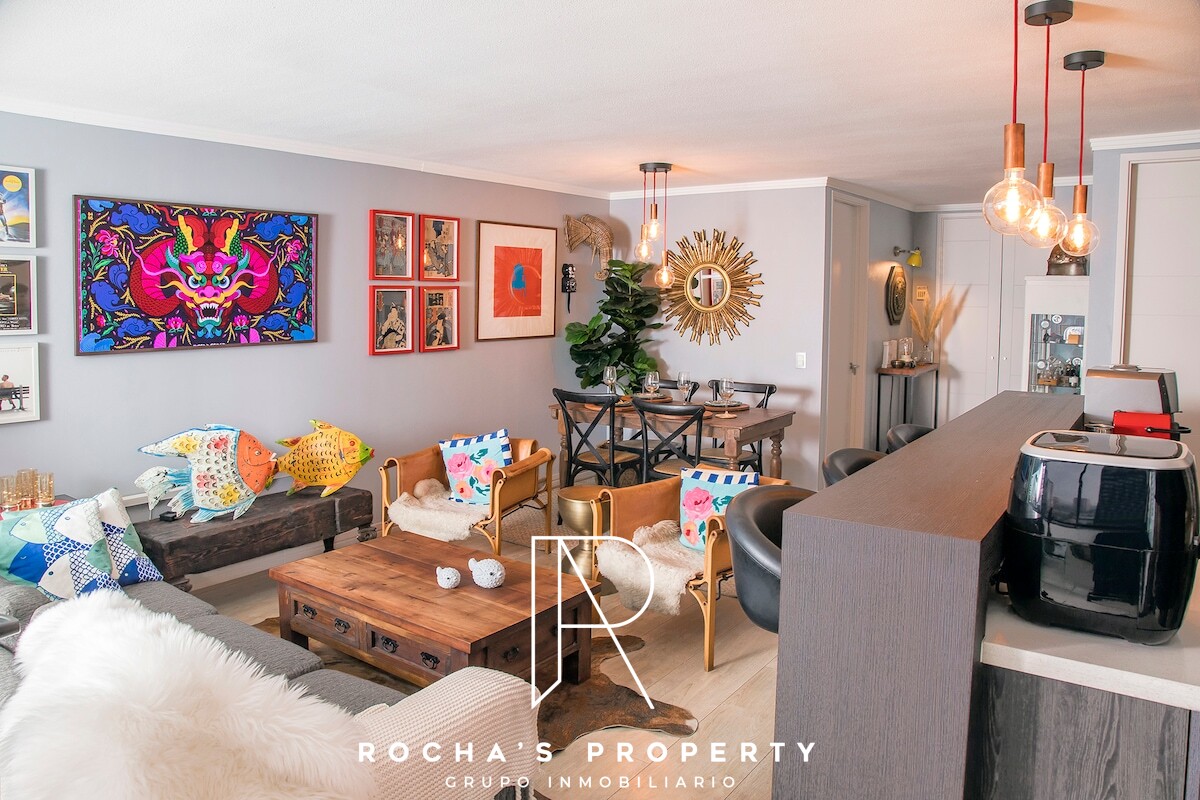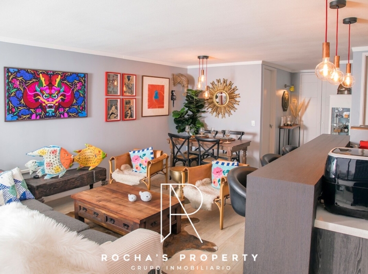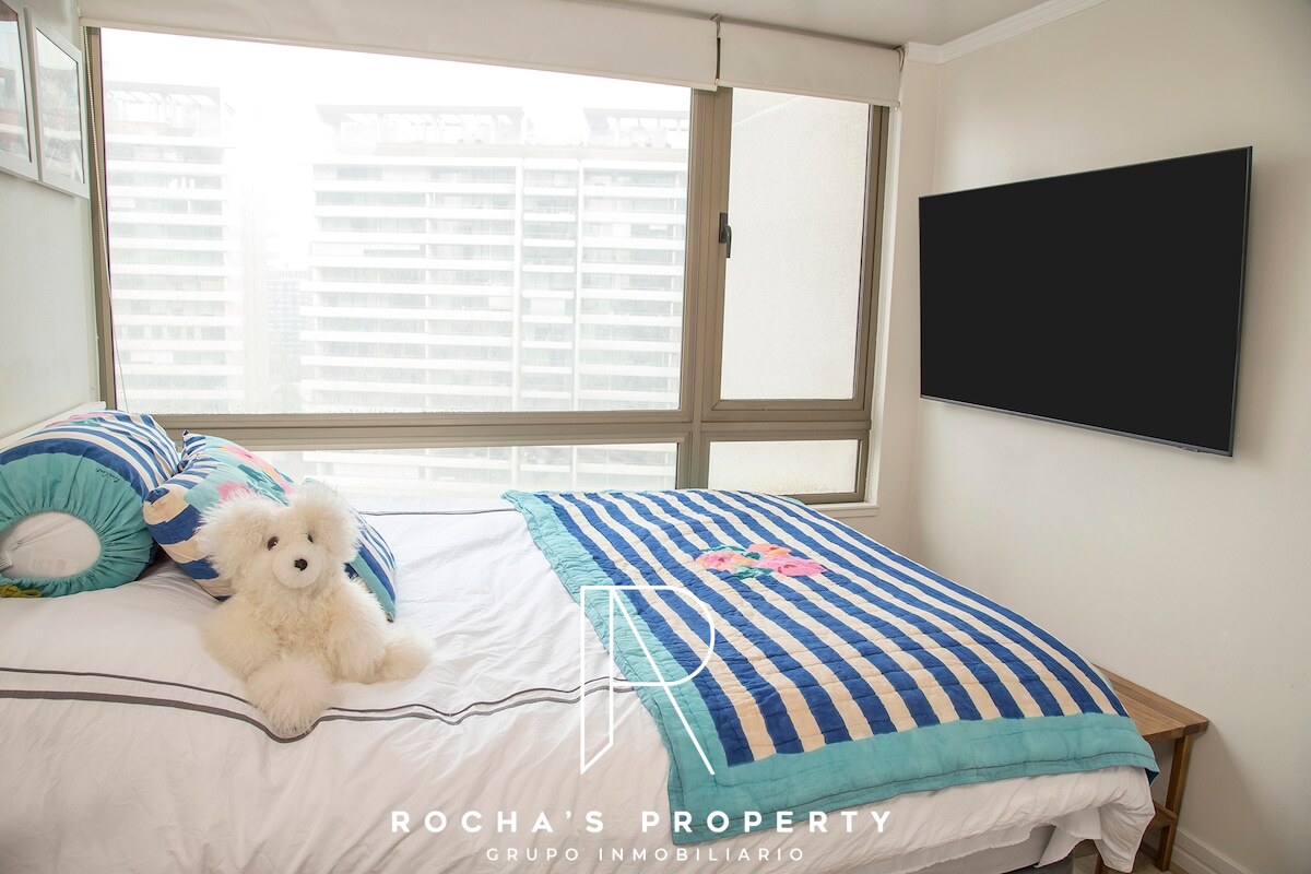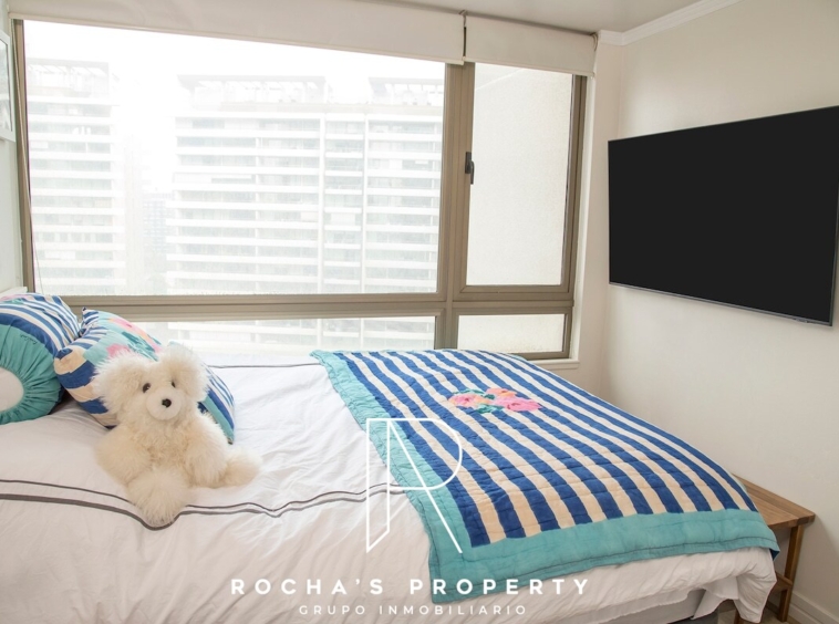 Departamento amoblado en la comuna de Las Condes, ubicado en Manquehue 951, con 102 m² totales. El inmueble ofrece 2 dormitorios y 2 baños, cuarto de lavado, terraza de 12 m² y 1 estacionamiento. Las áreas comunes incluyen gimnasio y piscina en la azotea, brindando espacios para ejercicio y descanso sin salir de la propiedad. En el sector, encontrarás una mezcla de comodidades de alto nivel que facilitan una vida cómoda y conveniente.