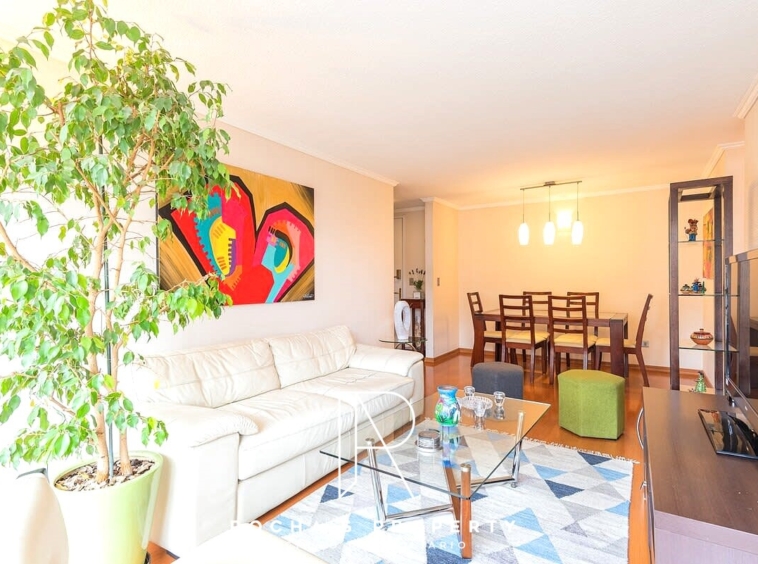 ¡Vive en el corazón de Las Condes! Moderno departamento amoblado de 2 dormitorios y 2 baños, con calefacción por losa radiante, listo para mudarte. Ubicación privilegiada cerca del Mall Parque Arauco, Parque Araucano y Metro Manquehue. Confort, seguridad y estilo, con acceso a excelentes áreas comunes y estacionamiento privado.