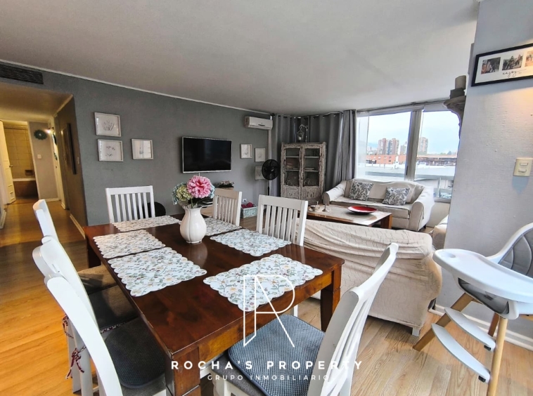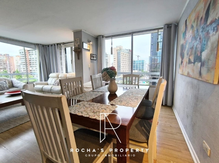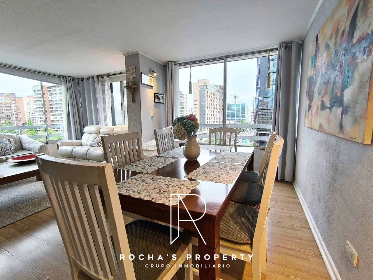 Estupendo departamento amplio de 100 m², ubicado en Manquehue norte, muy cerca de los militares. A solo 5 minutos caminando del Shopping Parque Arauco y Parque Araucano. Ideal para grupos y familias, con capacidad para hasta 7 personas y cuna disponible.