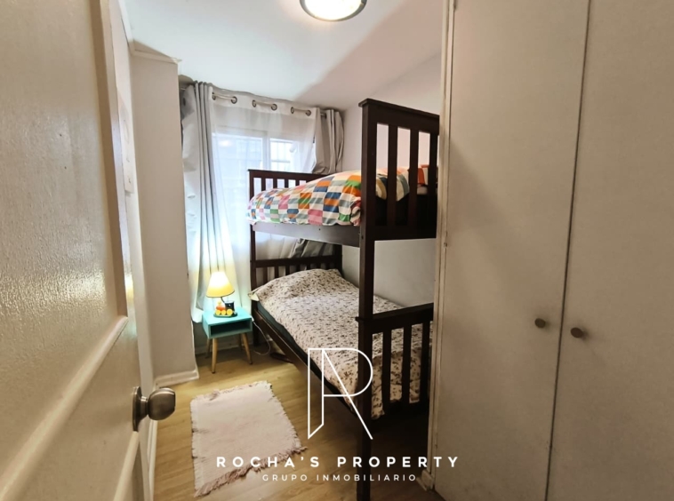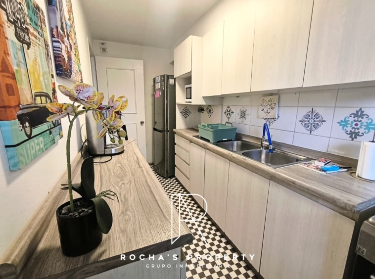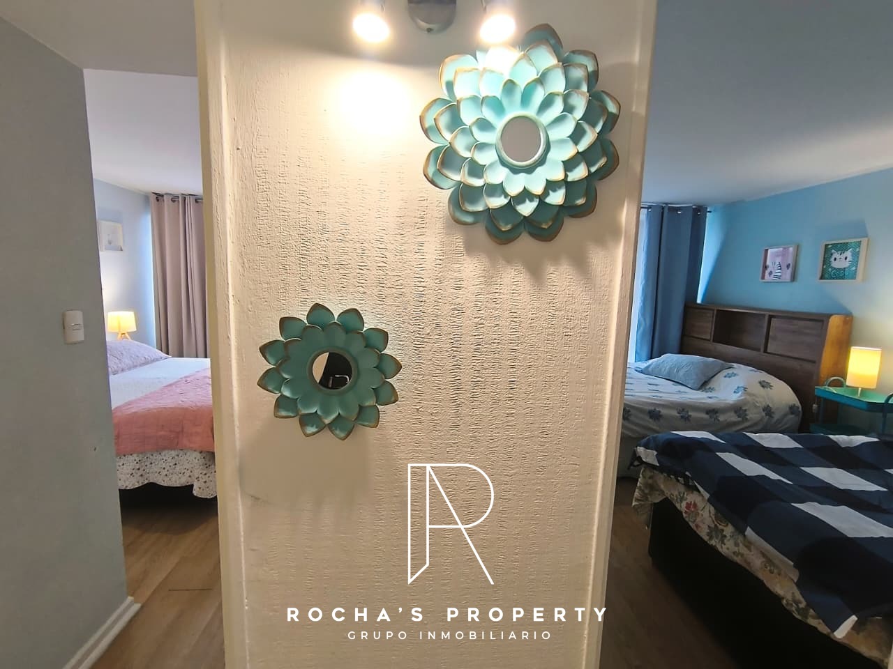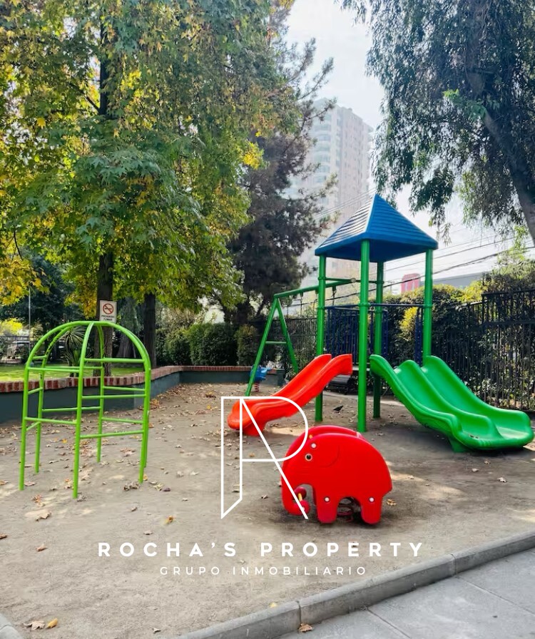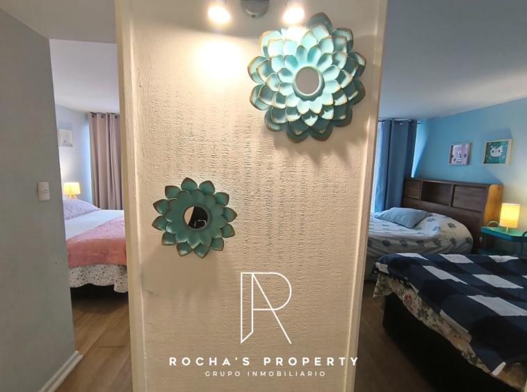 Condominio cerrado con jardines, áreas de juegos infantiles y conserjería permanente.