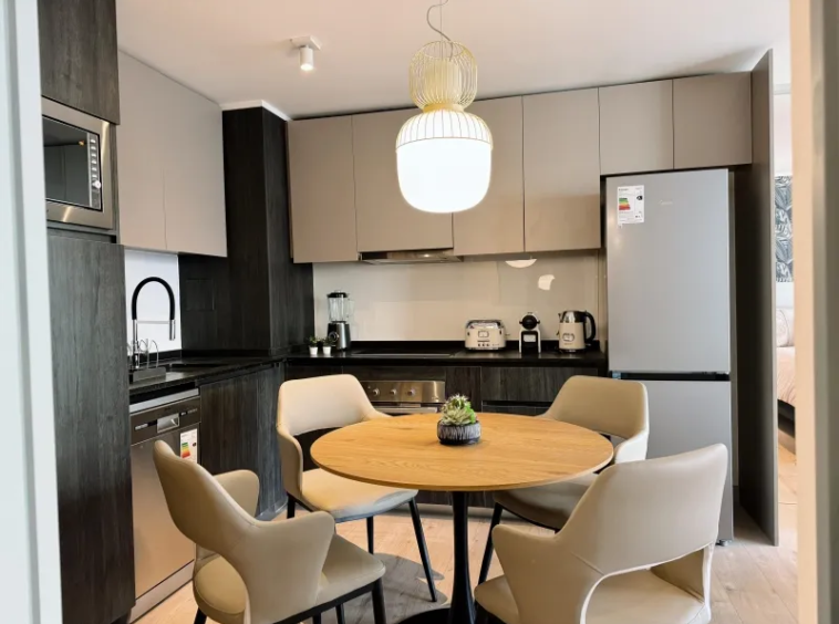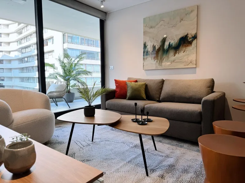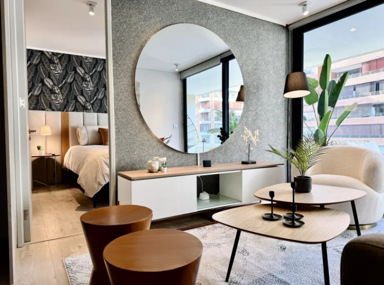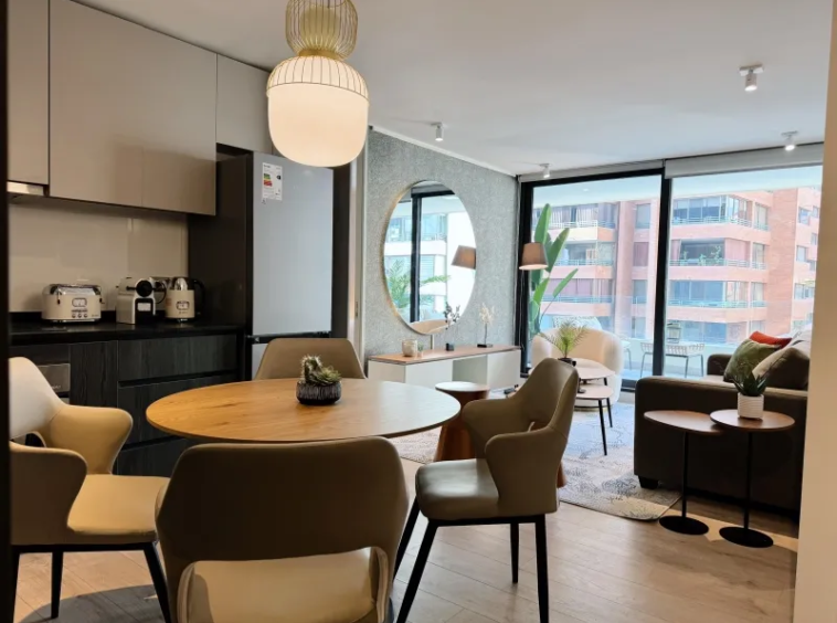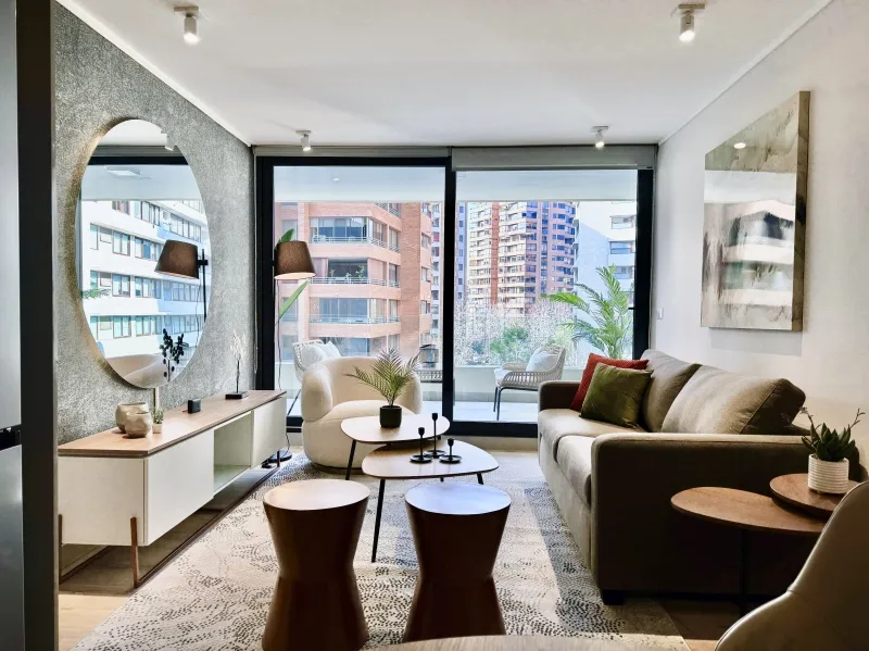 Con una ubicación privilegiada cerca del Parque Arauco, este departamento está rodeado de tiendas exclusivas y restaurantes gourmet.